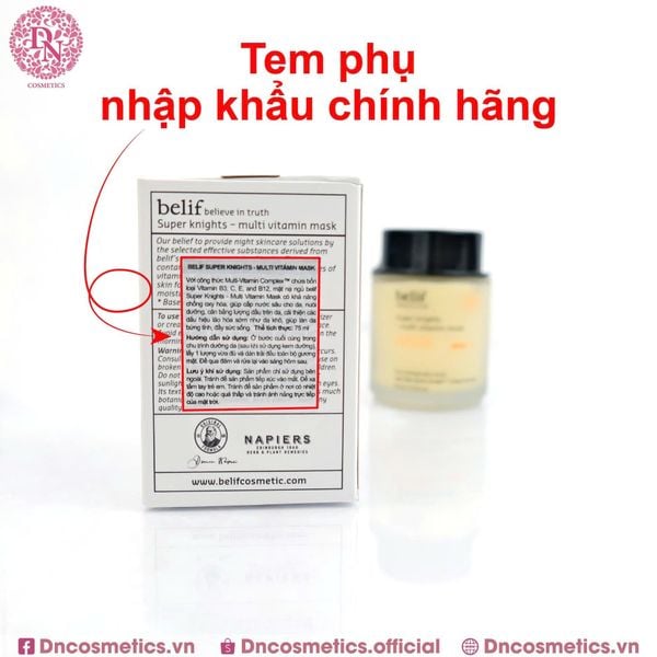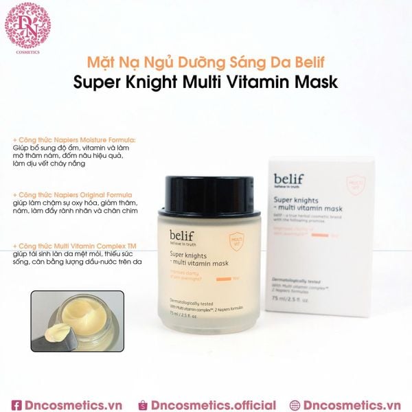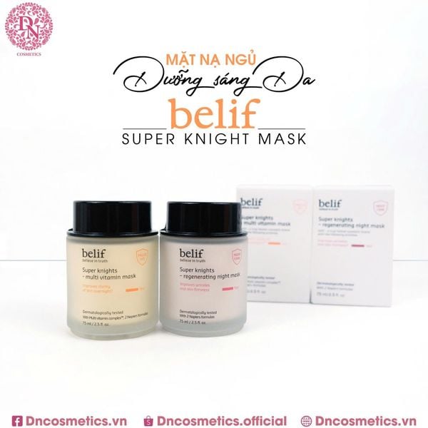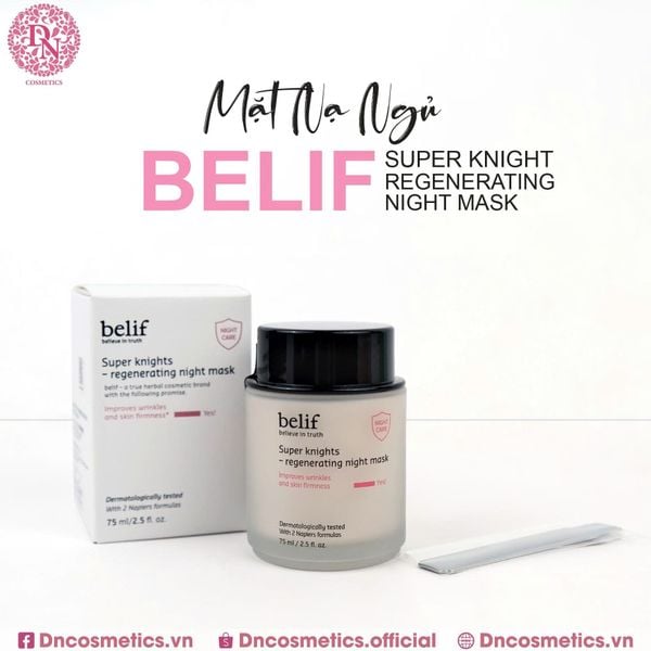 Mặt nạ ngủ Belif là sản phẩm chăm sóc da nổi tiếng của Hàn Quốc, có hai dòng chính là Belif Super Knights Multi Vitamin Mask (dưỡng sáng, phục hồi) và Belif Super Knights Regenerating Night Mask (giúp nuôi dưỡng và giữ ẩm sâu, phục hồi và chống láo hóa) được đánh giá cao về khả năng dưỡng ẩm và làm dịu da.