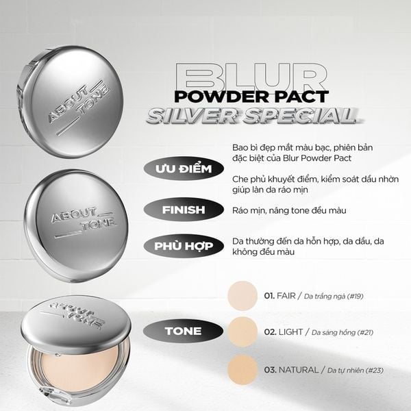 THÔNG TIN SẢN PHẨM PHẤN PHỦ ABOUT TONE BLUR POWDER PACT 9G - SLIVER EDITION: