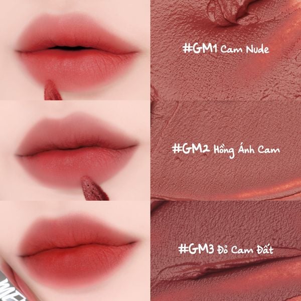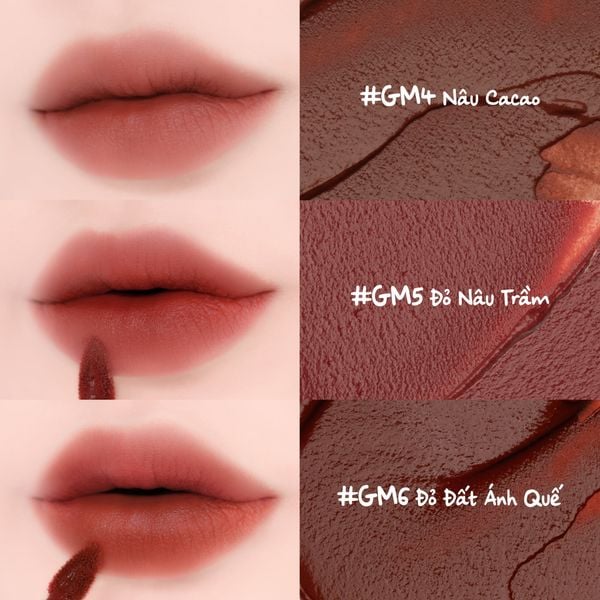 BẢNG MÀU SON KEM LÌ MERZY THE GLAM MELLOW TINT 4G:
