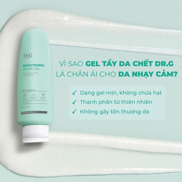 - Tẩy tế bào chết Dr.G Brightening Peeling Gel có công dụng dưỡng ẩm, bảo vệ da, chống Oxy hóa và nuôi dưỡng làn da trắng sáng, rạng rỡ hơn.